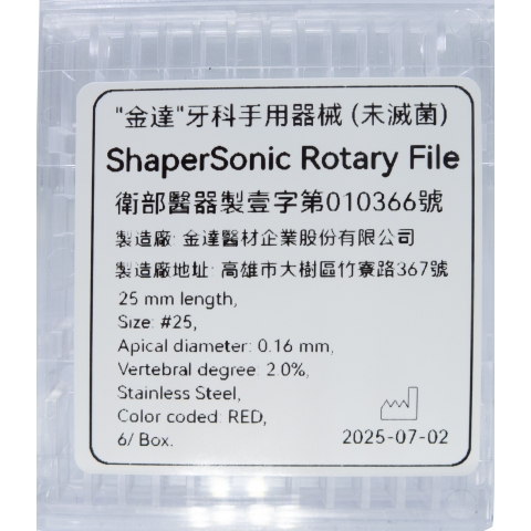 - 第一等級醫療器材許可證: 衛部醫器製醫字第010366號 "金達" 牙科手用器械 (未滅菌)